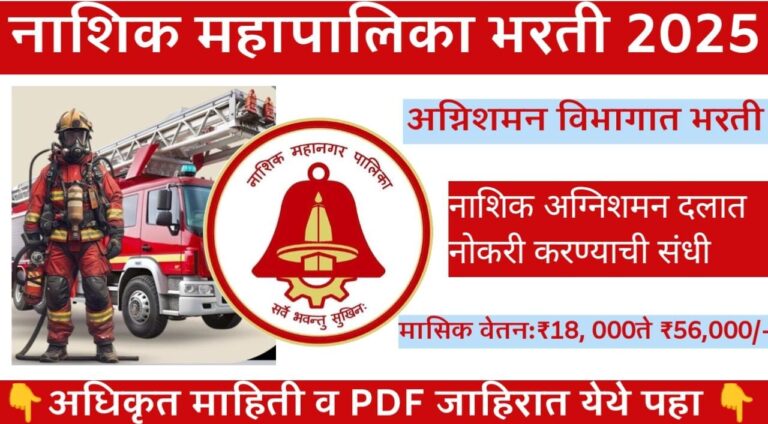 Nashik mahanagarpalika Bharti 2025| नाशिक महापालिका भरती 2025 ! आस्थापनेवरील गट -“क” व गट- “ड” यामधील आपत्ती व्यवस्थापक व अग्निशमन …
