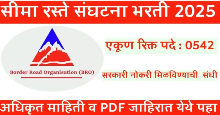 Border Roads Organisation Bharti 2025 : सीमा रस्ते संघटना भरती 2025 :10 वी, ITI पास साठी सुवर्ण संधी ! सीमा …