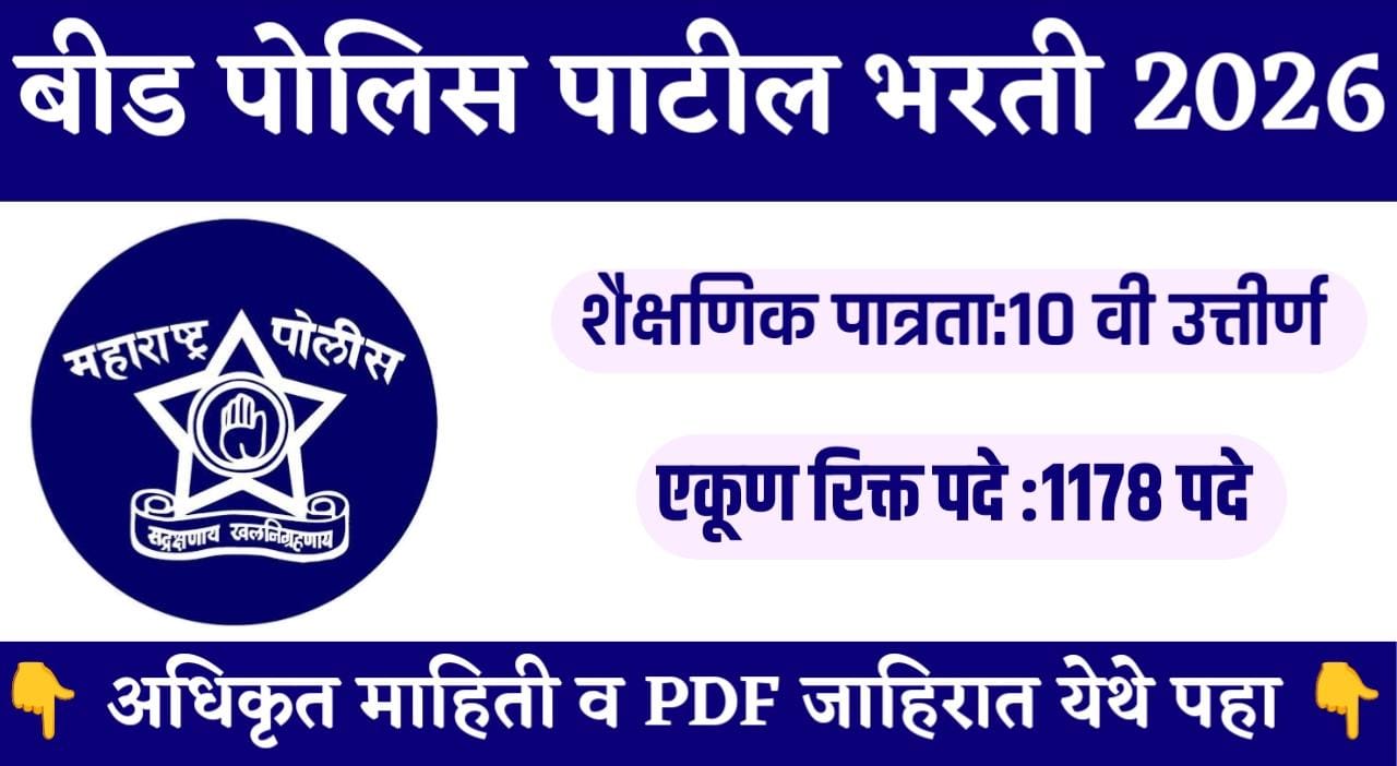 Beed Police Patil Recruitment 2026: Beed Police Patil Recruitment 2026! Total 1178 posts vacant.